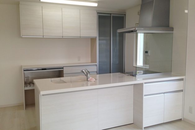 対面式キッチンにすると、配膳や後片付けが楽になり、お子様が積極的におてつだいしたくなる、お母さんの家事負担が減る魔法のキッチンです。