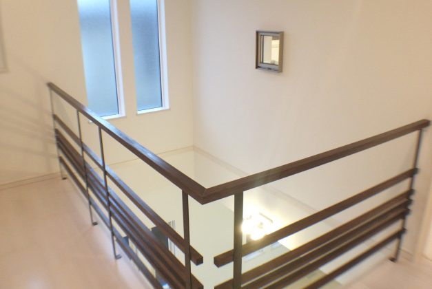 階段室の壁には、お施主様ご希望のガラスブロックを散りばめました。玄関からも見える位置にあり、インテリアの一部としてオシャレ度をアップさせています。