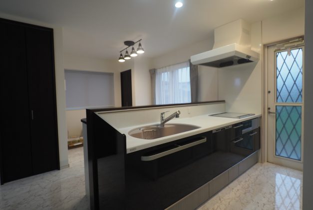 お母さんの家事動線と、南側を隣家が塞いでいる中での採光にこだわった自由設計のおうちです。